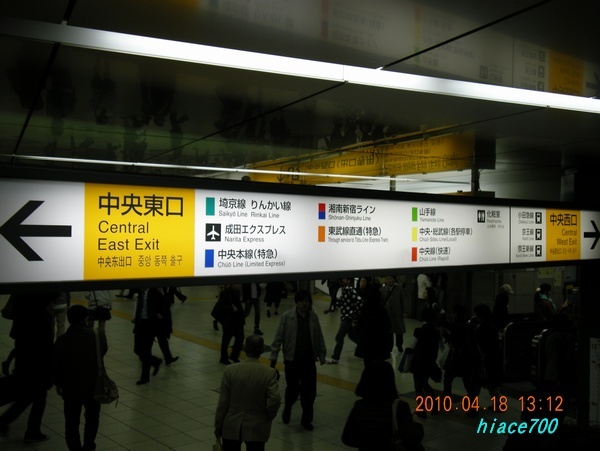 신쥬쿠역의 안내판에는, 일본어, 영어, 중국어, 한국어가 표시되고 있다
