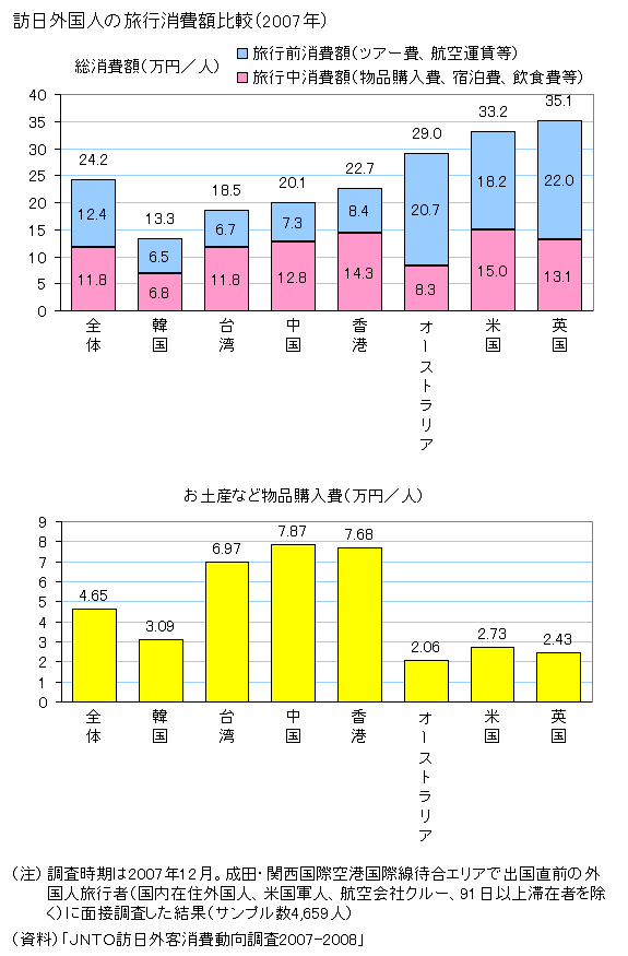 韓国人が日本旅行で使う金額3万円と言うのは、あくまでも土産物などの物の購入に充てた金額のみのようですね。
