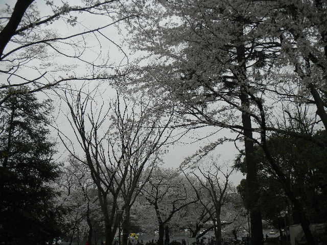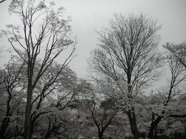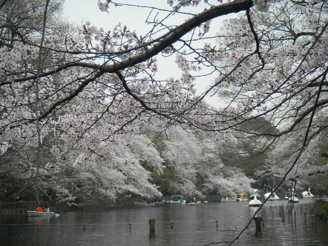 写真以下7枚。桜の花の時期の、井の頭(inokashira)公園の風景例。この日は、桜の花は、調度、満開でしたが、天気は、生憎、悪く、肌寒い気候で、曇り、時々、雨と言った天気でした。