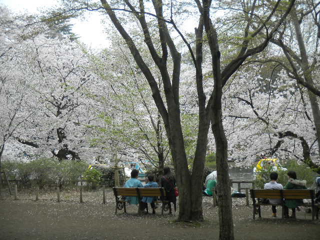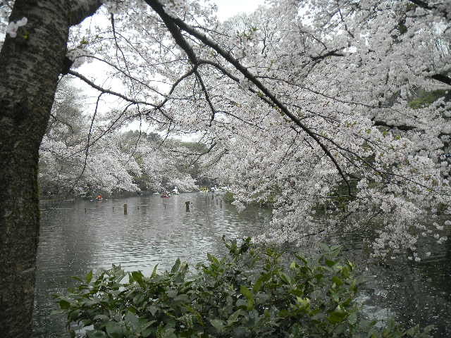 写真以下2枚。再び、桜の花の時期の、井の頭(inokashira)公園の風景例。