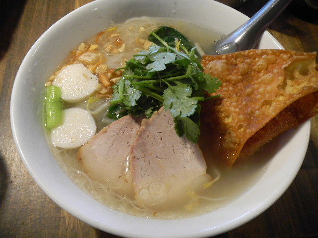 この時、私が、このカフェ(cafe)で、間食・おやつとして食べた、軽食。汁(soup)ビーフン(rice noodles・rice vermicelli)。ちなみに、この時、彼女は、このカフェ(cafe)で、間食・おやつとして、デザート(dessert)(甘い物)を食べました。