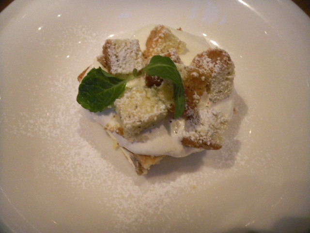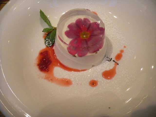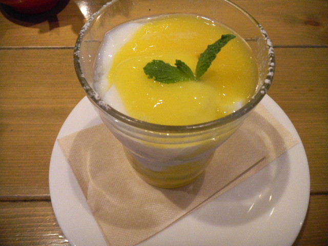 マンゴー(mango)のソース(sauce)の、杏仁豆腐(annin tofu)。