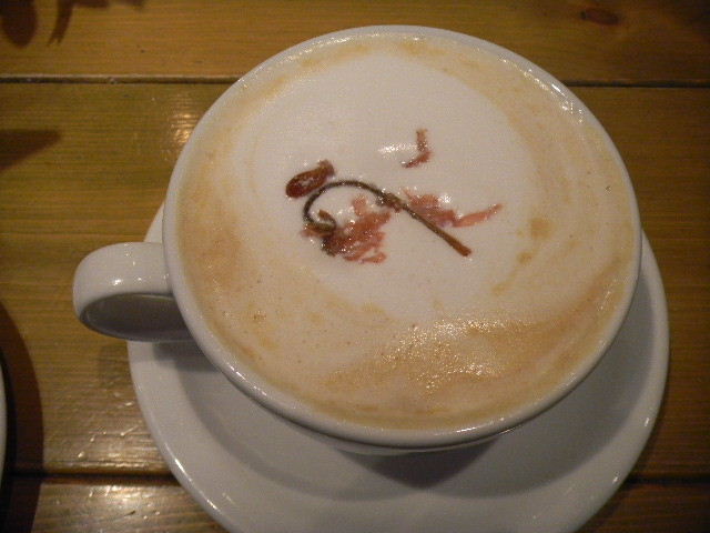 내가, 이 때, 디저트(dessert)와 함께 마신 음료의 하나.벚꽃 라테(벚꽃 latte).