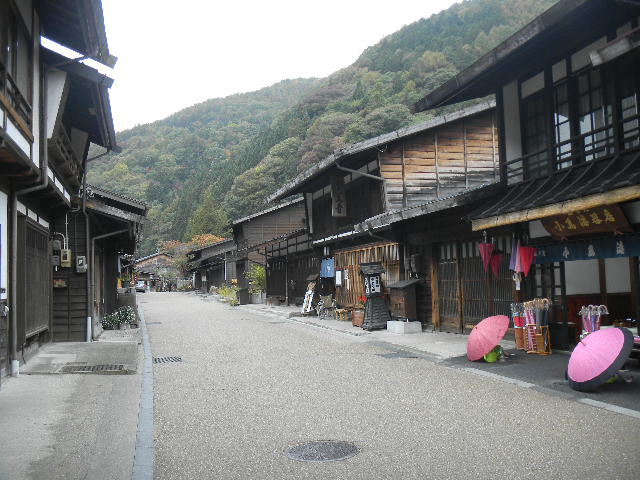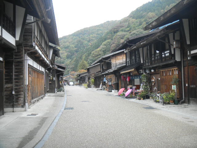 写真以下。奈良井(narai)の、古い(おそらく、主として、江戸(edo)時代(17世紀から、19世紀半ば)に建てられた)建物が残る街並み。昔の街道(旅人が通る道)沿いに、約1kmに渡って、古い(おそらく、主として、江戸(edo)時代(17世紀から、19世紀半ば)に建てられた)、商人等の家(住宅)の建物、商店(店舗)の建物、宿屋(宿泊施設)の建物が、残り、日本で、古い(江戸(edo)時代(17世紀から、19世紀半ば)の)、宿場町(syukuba町)(歴史的に、都市間等を結ぶ街道(旅人が通る道)沿いにあって、旅人達の宿泊地として、旅人達の為の、宿泊施設や飲食施設を中心に発展した、町(村))の雰囲気を、最も、良く残す場所の一つとなっています。なお、昔の街道(旅人が通る道)(写真の道路)は、基本的に(配達等の自動車を除いて)、住人の自動車だけしか通り事が出来ません。したがって、観光客は、周囲の、公共駐車場に、自動車を止め、歩いて(散歩しながら)、観光する事になります。