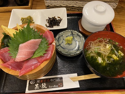 카고시마시내에 돌아와, 점심은 흑다랑어사발 1500엔.싼, 맛있다.