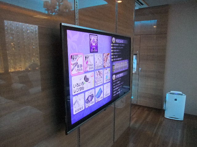 客室のテレビ(TV)。客室のテレビ(TV)は、通常のテレビ(テレビ放送)の他、様々な(多くの種類の)映画、様々な(多くの種類の)、AV(porn作品)を、無料で、楽しむ事が出来ます(無料で見る事が出来ます)。また、you tube動画も見る事が出来、様々な(多くの種類の)、ゲーム(video game)も、楽しむ事が出来ます。DVD・Blu-ray playerも、備わっています。 video game console用の端子も備わっており、自分で持ち込んだ、video game consoleで、ゲーム(video game)を楽しむ事も出来ます。