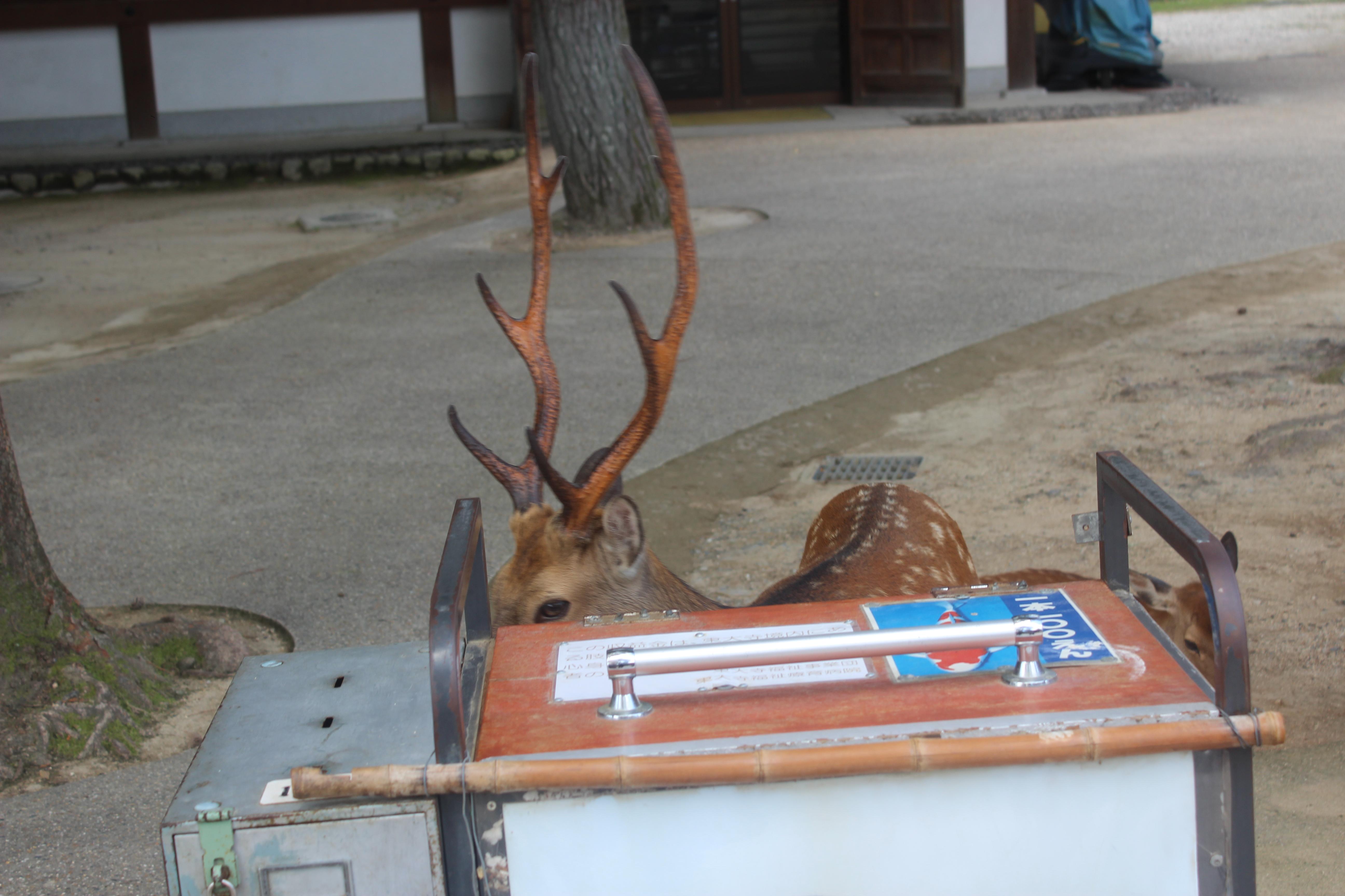 中々に鹿のおやつを販売するお婆さんがいらっしゃるのに
