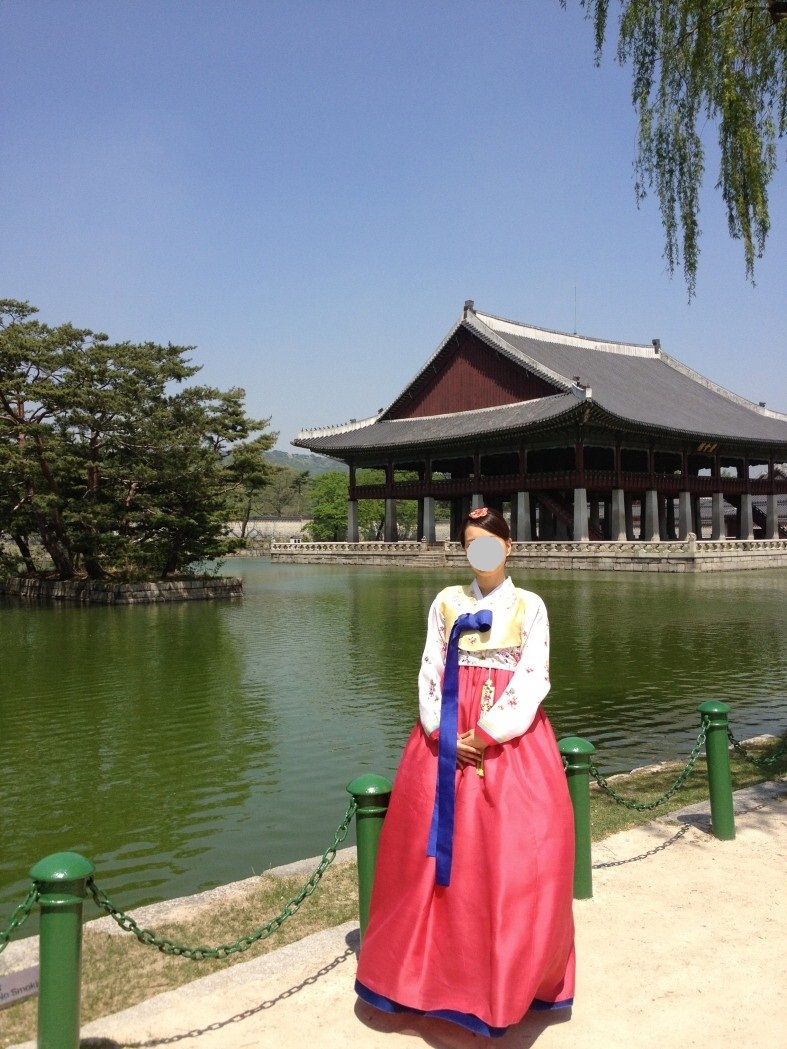 古臭い所だが, それでも景福宮へ来たから慶会桜の前でまた写真を撮ってくれます. 普段着て通った服を着て取った時とは確かに感じが違いますね. 確かに伝統様式の建物と伝統衣服はマッチになりますね.