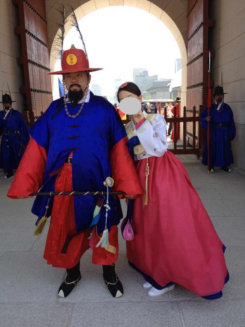 一日ぶりに色んな所を歩き回らなければならないので, もう景福宮をさっそく出る事にしました. 出る前に図体が雄大で威厳がある私たち守門将さんと一緒に写真を撮りたいからといって... 無表情な表情がなんだかもっと笑わせた..