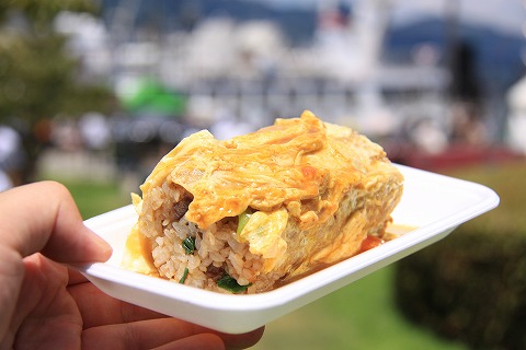 여기는, 오믈렛풍.카레 소스 걸리고 있습니다.