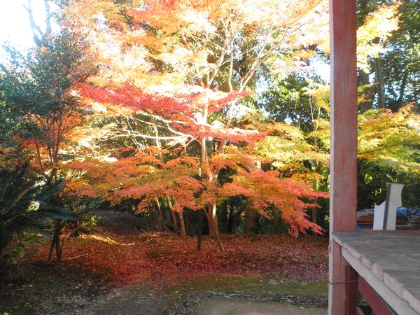 本堂と紅葉。本堂前の紅葉はほとんど散っていました。