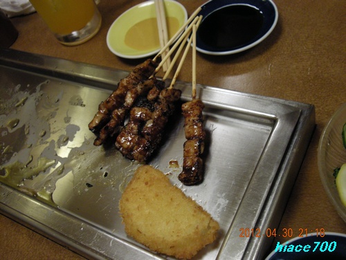 家内、お袋、末子の4人で焼鳥屋で夕食