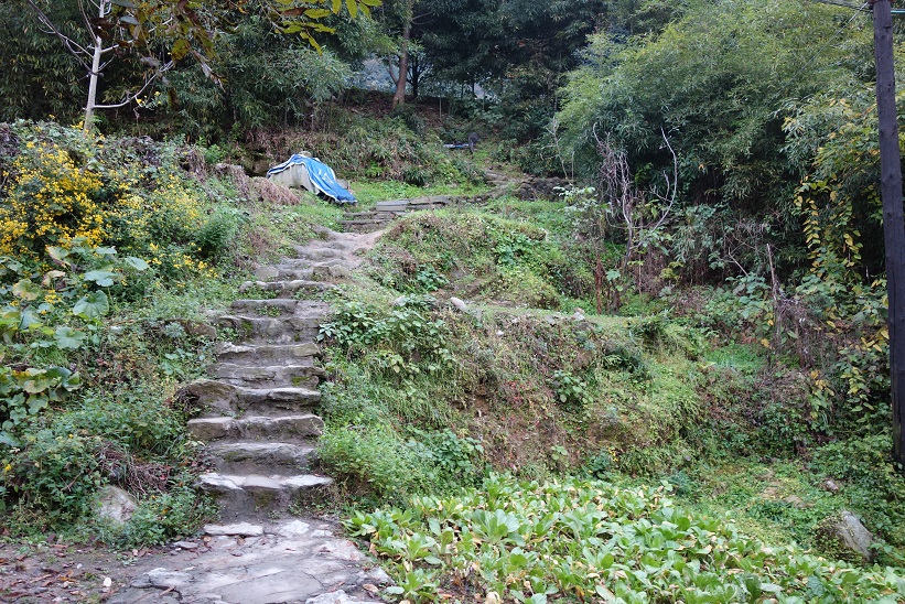 朝、昨日降りた道路脇の石段