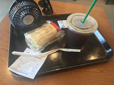 아침은 스타벅스에서 커피와 샌드위치.