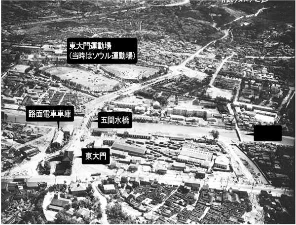 写真の上が南側だ。今年11月に撤去される予定の東大門運動場のかつての姿を見ていると、