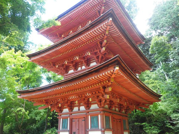 三重塔は12世紀の建立で、高さ16mの小さな塔である。