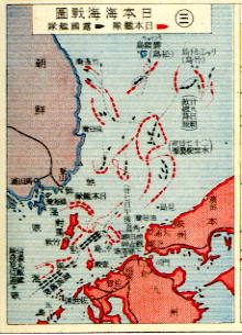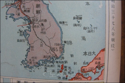 海戦を説明する部分には対馬島など日本領土はかば色に表示されているが韓半島と独島(日本人 竹島)・鬱陵島(松島)は灰青色で明確に仕分けされて塗られている.