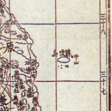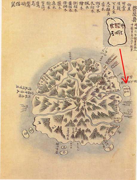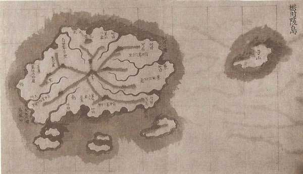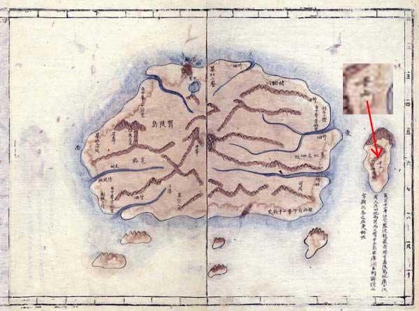 18世紀の鬱陵島図(右の小島に「所謂、于山島」と書かれている)