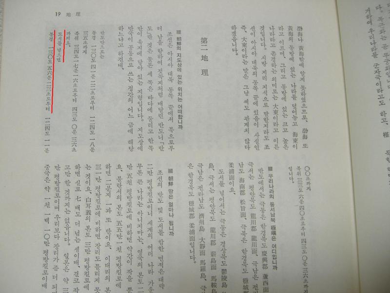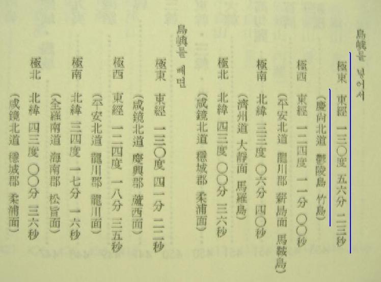 「한국의 가장 동쪽의 섬은 동경 130도 56부 23초의죽서(츄크드)다」라고 써 있습니다!