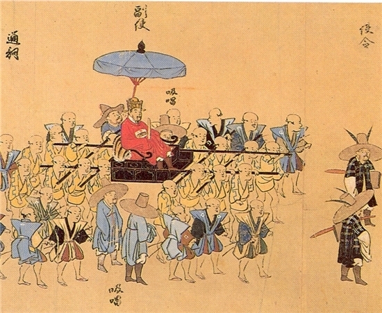 조선시대 최후의 마지막 통신사들의 행렬 모습이 된다. 왜인들이 가마를 메고 가마에는 조선 통신사들이 타고 있으며 수많은 말들에는 통신사 일행들이 갓이나 특이한 차림이 보이고 웅장한 행렬이였음을 보여준다.