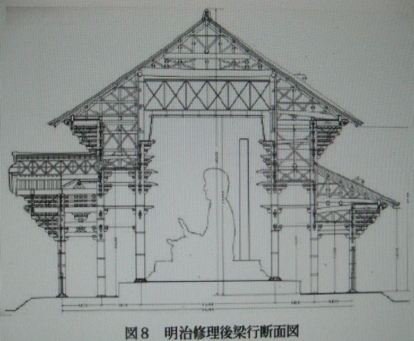 3대째의 대불전은, 메이지 시대에 대규모 수리를 받는다.