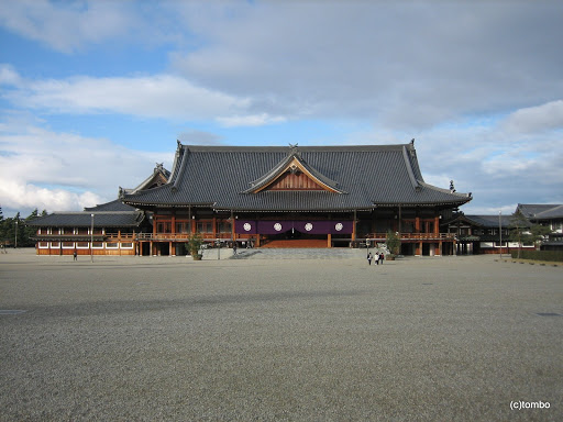 정면으로 4개의 거대한 예배소를 갖추어 안쪽에 교조를 제사 지내는 건물을 배치해, 긴 회랑에서 연결한다.