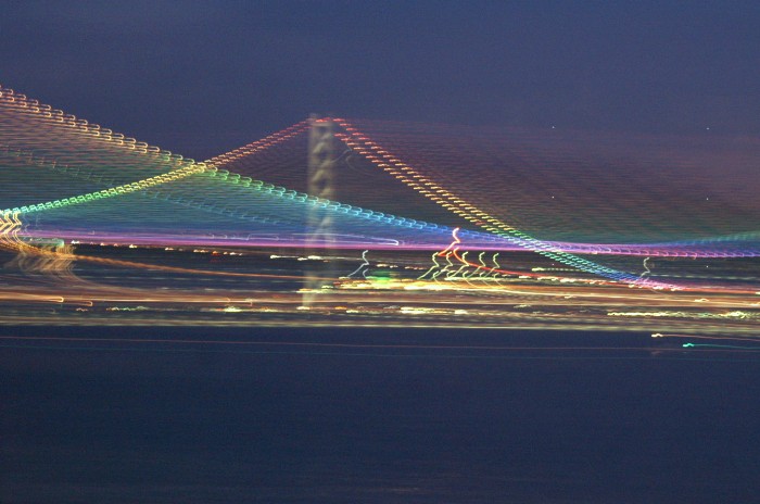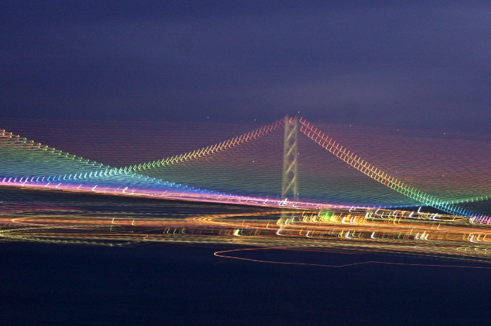 大橋のイルミネーション カメラを振り回して 遊んでいます