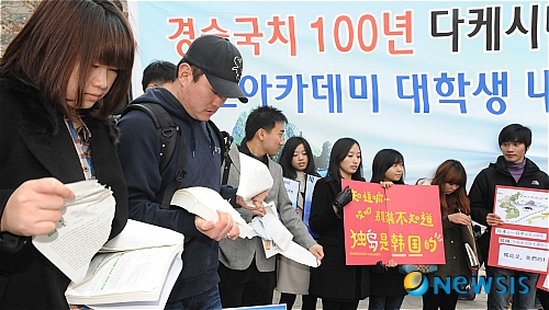 [ニュース天地=張要した記者] 竹島の日を控えて大学生たちが全世界指導及び出版物に過ち表記した Takeshima(竹島)を Dokdo(独島)に登載するための運動に音頭を取ることを宣布した.