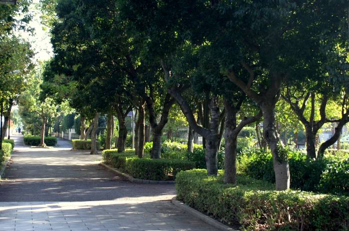 ショッピングゾーンから 中央公園までのアプローチ 雨よけのテントは、先に病院が、あるため