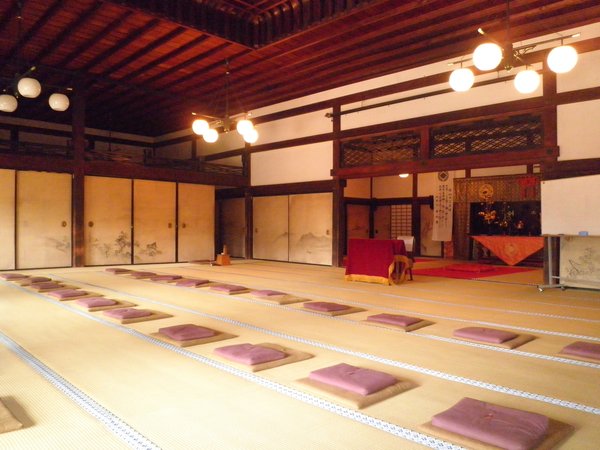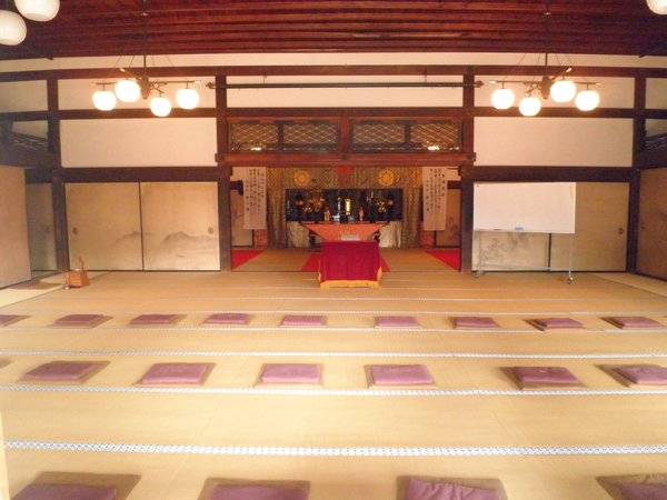 法堂は1654年の建築で、総欅造り。入側柱と側柱の間を畳の間とし、