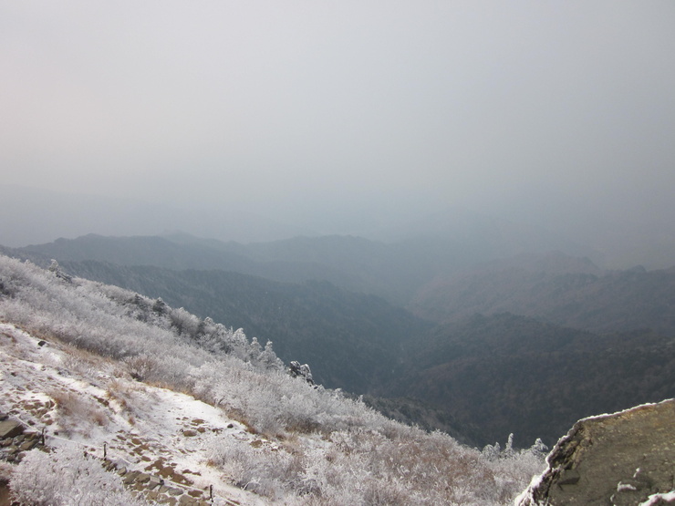 山中腹までは紅葉に水気を失ってマラガ落ち葉になって 秋を終わることを, 住んだ峰には雪が白く積もって冬が始まったことを知らせてくれている.