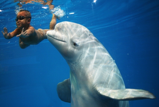 고래는 지금 바다를 헤엄치는 바다의 동물이지만 과거 고래는 개와 같은 육지의 동물이었습니다. 하지만 해안가까이 살던 고래의 태초는 먹이를 구하기 힘들어지자 바다로 몸을 맡겨 육상의 다리보다는 지느러미로 변모합니다. 하지만 고래는 아직 척추 동물의 그대로 헤엄을 칩니다. 다른 어류와 다르게 척추를 좌우로 흔들어 헤염치지 않고 개와 마찬가지로 위아래의 척추 움직임으로 앞으로 나아가는 추진력을 가지고 있습니다. 아가미 호흡이 아닌 사람과 같이 허파로 숨을 쉬는 포유류중에 하나입니다. 유선을 통한 초유를 먹입니다. 육상동물을 닮아 있는 척추로 확인 할수 있는 것 처럼 고래는 개와 같은 형태의 허파 호흡과 척추 운동으로 초유를 먹이는 바다의 동물로 진화한 것입니다.