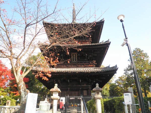 묘지안에 잠시 멈춰서는 「삼중탑」.높이 22 m.2대째 장군:도쿠가와 기데타다를 추도 하기 위해서 지어졌다.