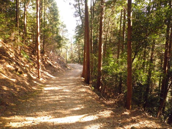 ずっと山道が続く。写真の場所は緩やかだが、急な階段も多い。