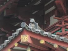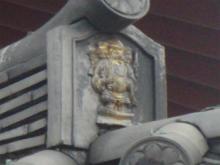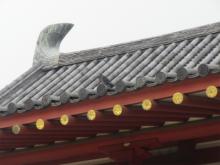 「五重宝塔一層目の北西角には、正面に大黒天・左に毘沙門天・右に弁財天を彫った瓦があり、どの方角から見てもその顔が見える」
