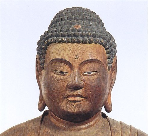 얼굴이나 신체에 나뭇결이 대로, 그야말로 「나무의 불상」이라는 느낌이 좋다.