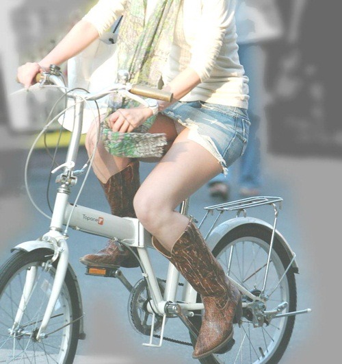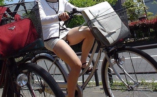 日本女はミニスカートをはいて自転車に乗る