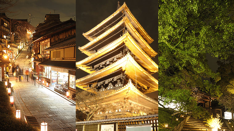 京都を代表する寺院・神社をはじめとする歴史的な文化遺産やまち並みなどを、日本情緒豊かな陰影のある露地行灯の灯りと花により思わず歩きたくなる路、華やぎのある路を演出しています。