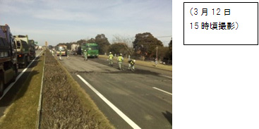 地震直後の11日午後4時30分頃に撮影された道路の写真は、アスファルトがバラバラ裂けて、地層が出てくるほどひどく毀損された姿である。