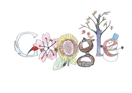今日一日、Googleのトップページには、2009年に行われた Doodle 4 Googleのコンテストで全国の小中学生が描いたロゴが掲載されます。地区代表に選ばれた30作品です。この年のテーマは「私の好きな日本」。日本の美しいところ、いいところ、大好きなところが、子供たちのまっすぐで力強い、豊かな表現力で描かれています。
