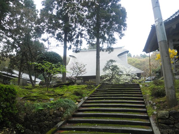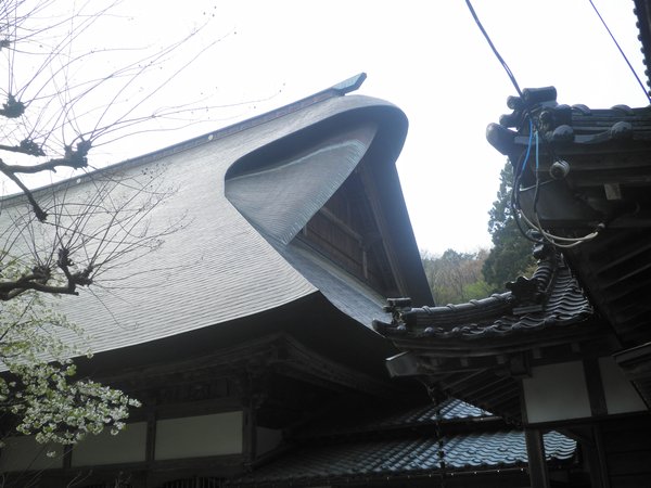 それにしても変わった屋根だ・・・と思っていると、住職が車で帰ってこられ、