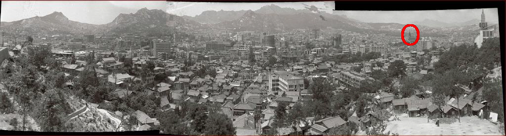 빨간 圓內 명동 성당이 확인되시리라 생각합니다.