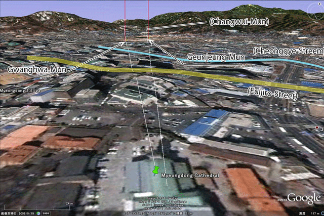 이 원리에 의해서 Google Earth상에 시점(명동 성당)