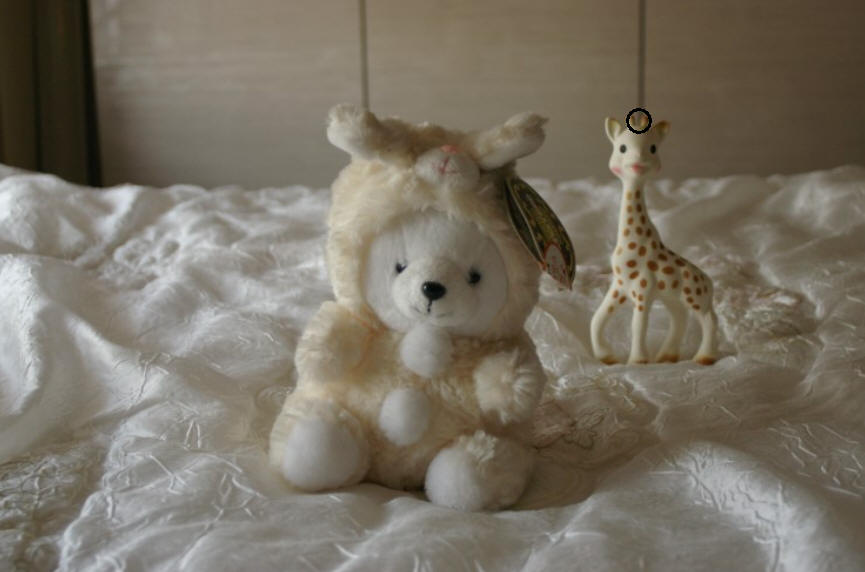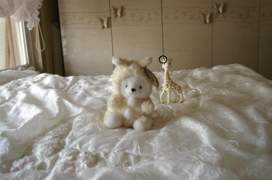 사진 1,2의 기란 뿔과 귀의 위치와 세로선을 봅시다.