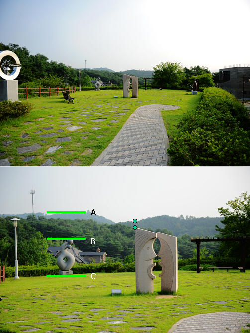 실제 눈으로 보는 것과 사진은 사진의 촛점 거리에 따라 많이 차이가 날 수 있습니다.