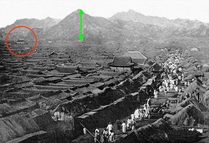 사진 4의 광화문 높이와 사진 5의 광화문 높이를 북악의 높이와 비교하여 생각해 봅시다.