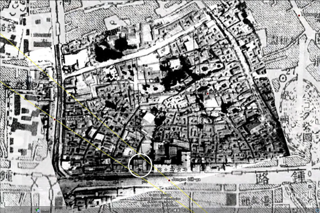 交点は当時の貫鉄洞、清渓川・長橋の北側、鍾路2街の南に位置する。