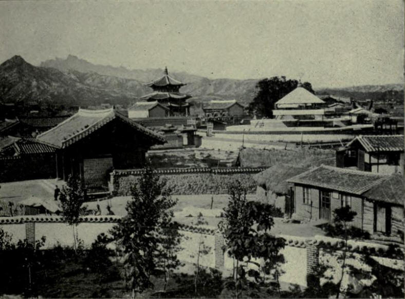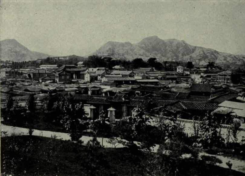 左の画郭には慶運宮(徳寿宮)大安門(大漢門)一帯、ロシア公使館等が写ってる。