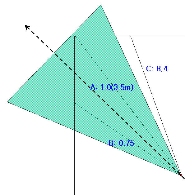 距離(通り)の割合で見れば撮影地点で角部分の欄干までの距離を 1で頭面