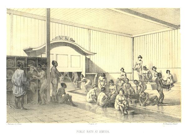 「알몸에서도 신경쓰지 않고 남녀 혼욕을 하고 있는 공중탕을 눈앞으로 하면, 미국인에게는 주민의 도덕성에 대해서, 그다지 좋은 인상은 가질 수 없을 것이다.」(「페리 함대 일본 원정기」).